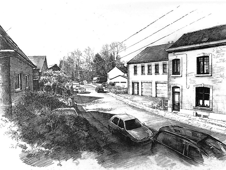 Perspectives d’intégration de votre projet urbanistique réalisées à la main par un architecte-artiste.